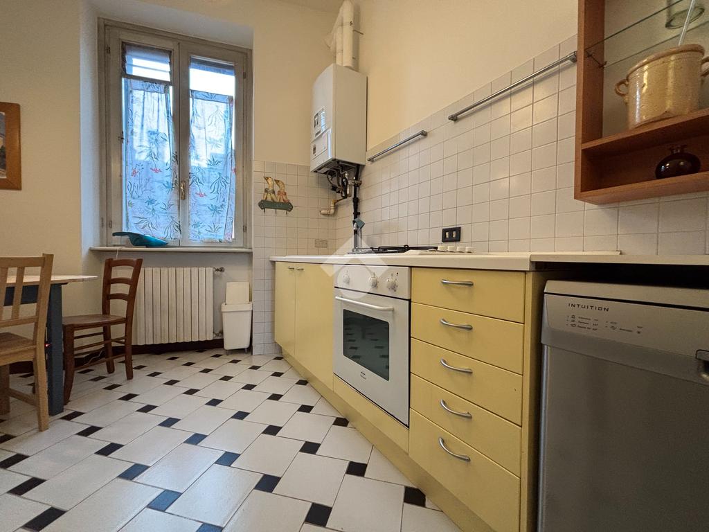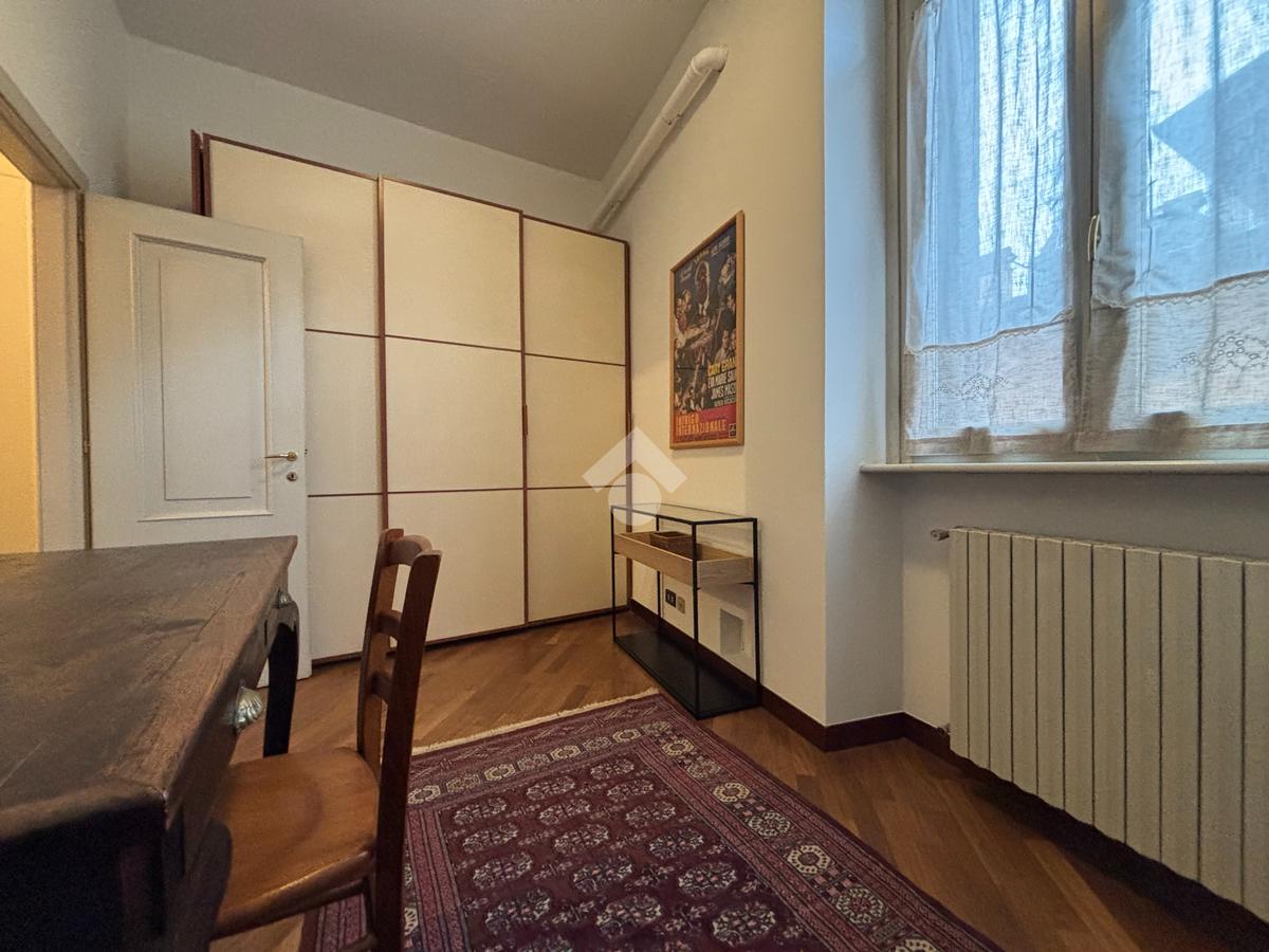 L'appartamento è composto da un ampio ingresso ed un soggiorno luminoso, la cucina è abitabile, una camera da letto matrimoniale, una seconda camere versatile (al momento adibita a studio) ed un bagno finestrato.